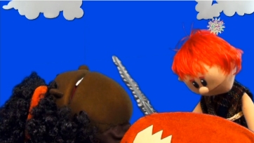 Biel interpreta Davi e Lipe faz o gigante Golias nesta aventura que também