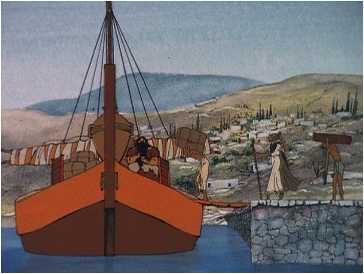 o fez partir de barco para longe daquela região. Quando o